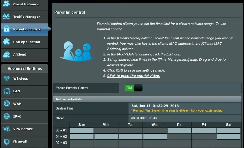 家长控制至少可以让您为每个允许的设备(由MAC地址标识)连接到网络设定时间限制。因此,如果你的孩子有一个在睡前很长时间才使用电子设备的坏习惯,但你不想一直扮演坏警察的角色,每天晚上在哪里以及何时上交电子设备,这都没有问题。