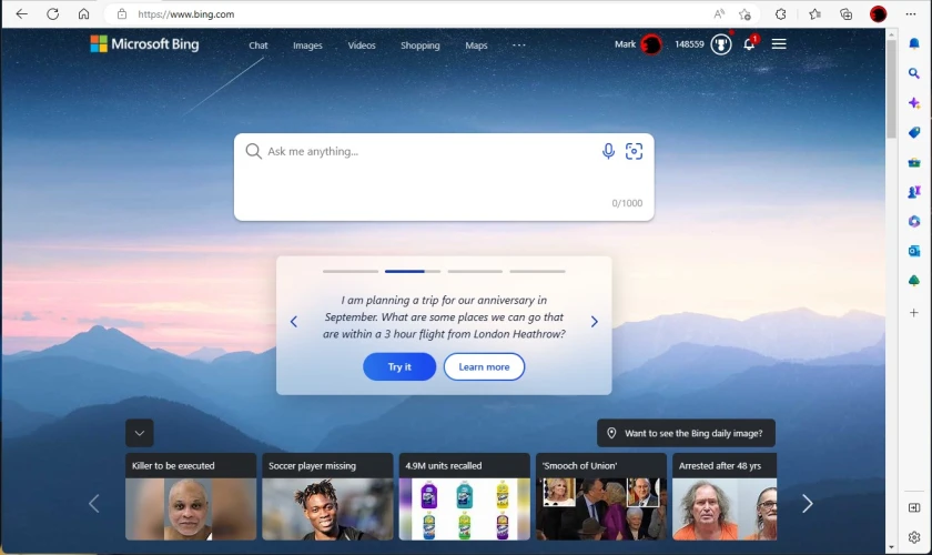我们在上一步中包含的ChatGPT链接将把您直接带到AI应用程序。对于必应来说,至少目前而言,要达到这一目标,还有一个额外的步骤是必要的。