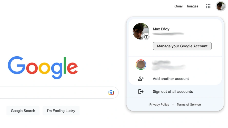 在Google.com上,点击右上角的用户图片,然后选择管理你的谷歌账户。如果你有多个谷歌账户,请确保你登录了正确的账户,但你应该为所有账户添加安全密钥。