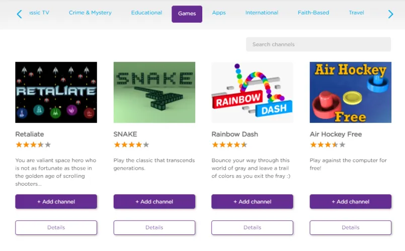 这不是任天堂的Switch,但你的Roku是仍在游戏中。点击主页按钮,进入流媒体频道>游戏,你可以用Snake进行复古,或者在糖果熊中进行一次以糖为燃料的狂欢。具有语音搜索功能的Roku增强型游戏遥控器支持运动控制游戏。