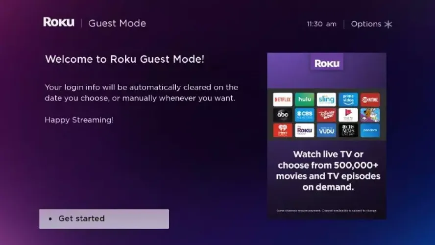 您的客人可以通过访问他们的Roku设置来感到宾至如归,而不会干扰您的设置。您所要做的就是启用访客模式(以前的自动注销模式)。访问:www.my.roku.com/Account/PIN,设置个人识别码,然后按Roku遥控器上的Home按钮。进入设置>系统>来宾模式>进入来宾模式。然后输入您的PIN并选择OK。当客人来住宿时,把他们带到Roku导游那里浅谈访客模式的使用