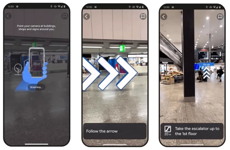 在芝加哥、长岛、洛杉矶、纽瓦克、旧金山、圣何塞和西雅图的商场,以及东京和苏黎世的机场、商场和中转站,都有动画箭头指引你。很快,它将在巴塞罗那、柏林、法兰克福、伦敦、马德里、墨尔本、巴黎、布拉格、圣保罗、新加坡、悉尼和台北的1000个新机场、火车站和购物中心投入使用。要使用该功能,请打开地图,然后单击相机图标。