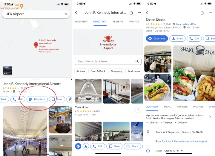谷歌地图并不只适合户外活动。你可以通过在地图中找到位置,点击它,然后滚动到目录,在商场、机场和其他大型建筑中导航。你再也不会迷路了,再也找不到肉桂卷了。