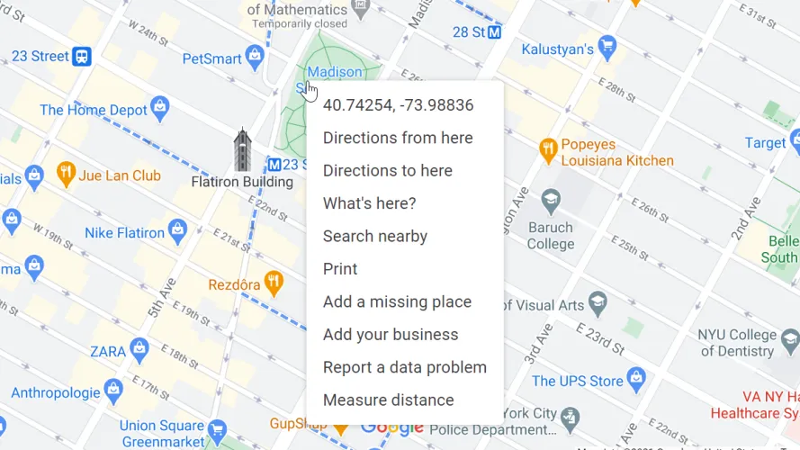 要到达你要去的地方,你可以输入你的目的地地址–但你也可以在地图上右击你要去的地方,这会提示一个下拉列表,你可以用它来查找到达或离开那个位置的方向。