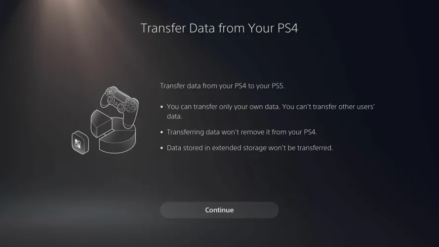索尼提供了几种将数据从一个主机转移到另一个主机的方法。事实上,它会在PS5设置过程中提示您这样做。但如果你当时跳过了这一步,你可以从控制台的设置重新启动这一过程。这是你的选择。