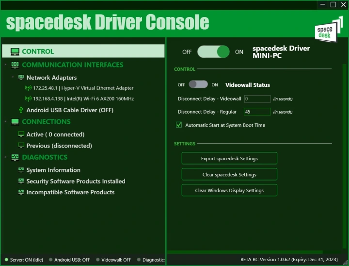 此外,请注意,默认情况下,Spacedesk驱动程序将始终在您的计算机启动时启动。要改变这一点,右击Spacedesk的任务栏图标,选择“Spacedesk驱动程序控制台”,然后取消选中“在系统引导时自动启动”的框。