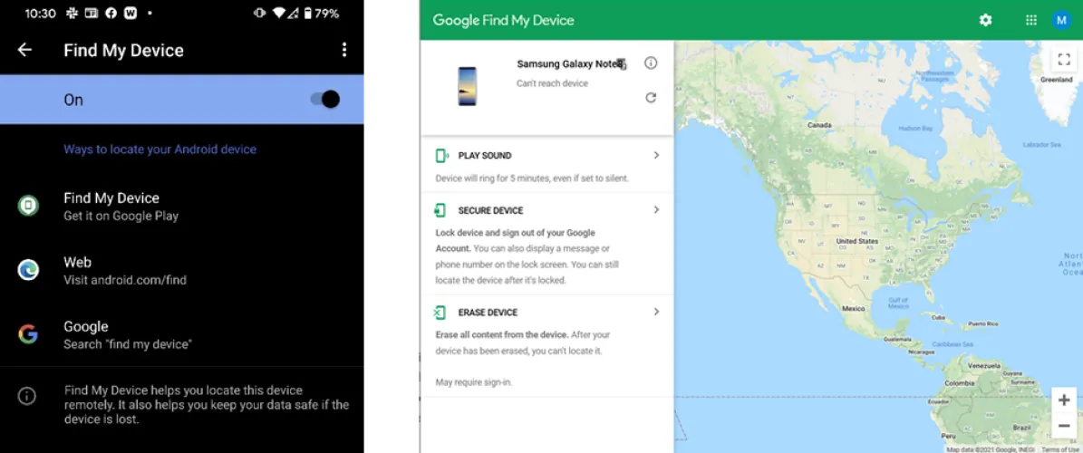 如果你把手机放错了地方,或者手机被盗了,这两个移动操作系统都有帮助你在地图上定位的功能。不仅如此,这些服务还发现,我的服务可以让你禁用手机,擦除它,并在上面播放声音。苹果的移动操作系统更进一步,允许你在丢失的设备屏幕上显示你的号码或其他消息,我们不明白谷歌为什么没有添加这一功能。
