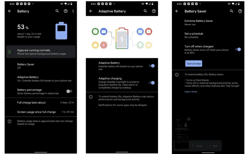 与iPhone相比,Android在节电选项上提供了更多的控制。您不仅可以启用省电模式,并在手机充电时自动关闭该模式,还可以使用自适应电池功能,该功能可以根据您的使用模式延长电池寿命。您还可以设置节电模式的时间表,并根据您的使用情况或达到指定的充电百分比自动进行选择。