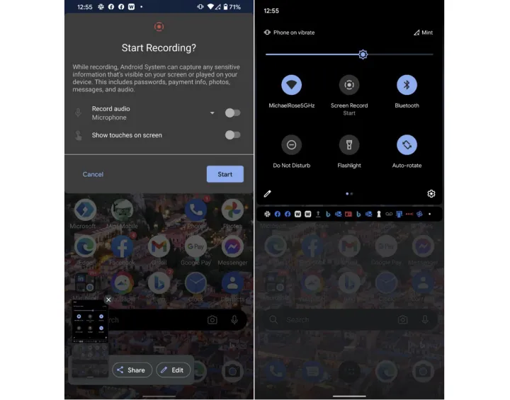 在Android 13中,谷歌在操作系统中添加了内置的屏幕录制功能。以前,三星、LG和OnePlus的用户都有这个功能,但现在任何运行Android 13的手机都有这个功能。它的使用很简单:你只需拉下顶部的卷帘,然后选择屏幕记录>开始记录。你可以选择是否显示触摸点和录制音频。若要停止录制,请再次拉下百叶窗,然后点击红色大条。它在我们的测试中表现得非常出色,在相册中生成了一个标准的MP4文件。