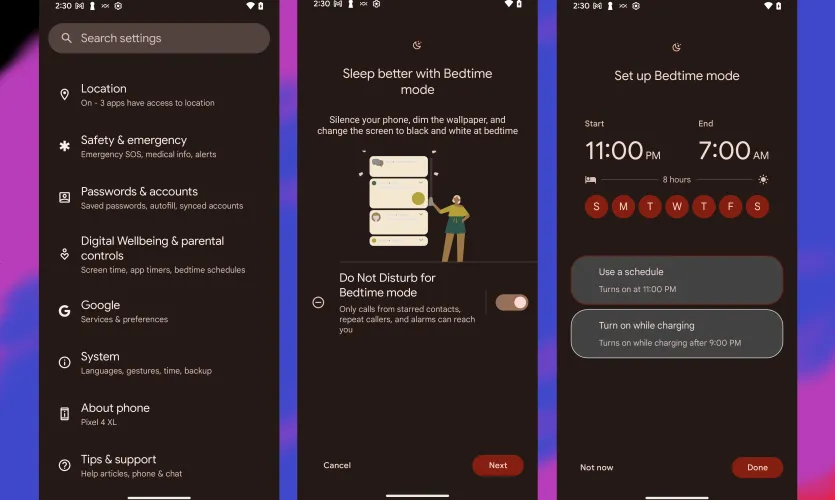 熬夜发短信和看末日卷轴不是世界上最健康的事情。安卓的睡前模式是谷歌数字福祉计划的一部分。它不仅在设定的时间让你的手机静音,还会将屏幕更改为灰阶,以防你在下班后必须查看屏幕。你也可以在睡前模式下切换到黑暗主题,或者直接把手机屏幕调暗,享受一些宁静。如果你在退休前需要更多的时间,下拉菜单中有一个暂停选项。如果你正在寻找更多的睡眠技巧,你应该阅读我们关于科技如何帮助(和伤害)你的睡眠的专题文章。