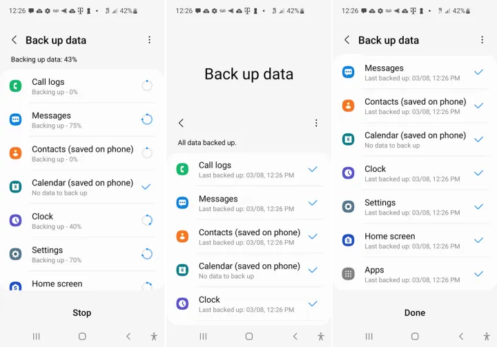 备份完成后,每种类型的数据旁边都会出现一个复选标记,以确认它已备份。点击Done(完成)。现在,您可以在重置或不重置设备的情况下随时恢复数据。