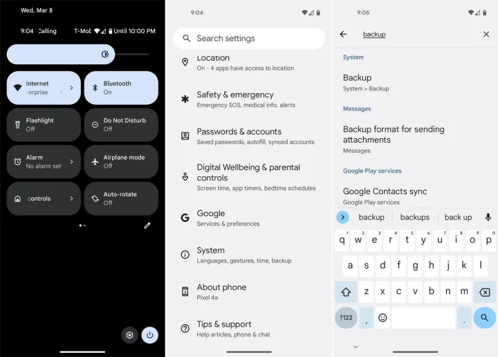 要开始,打开设置,然后找到一个选项,上面写着类似备份和重置或备份和恢复。它可能在设置屏幕上有自己的条目,或者位于常规、帐户或系统下。如果找不到,请点击设置中的搜索图标,然后搜索备份,这应该会显示您需要的选项。