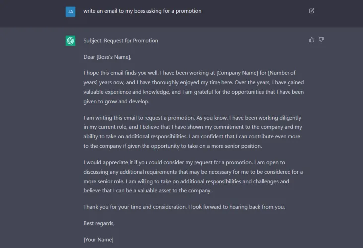 正在努力打开收件箱0吗?让ChatGPT成为你的私人助理,让它根据你的要求写电子邮件。在这个例子中,我让它写信给我的老板,要求升职,但你可以添加任何参数,然后进一步编辑它。