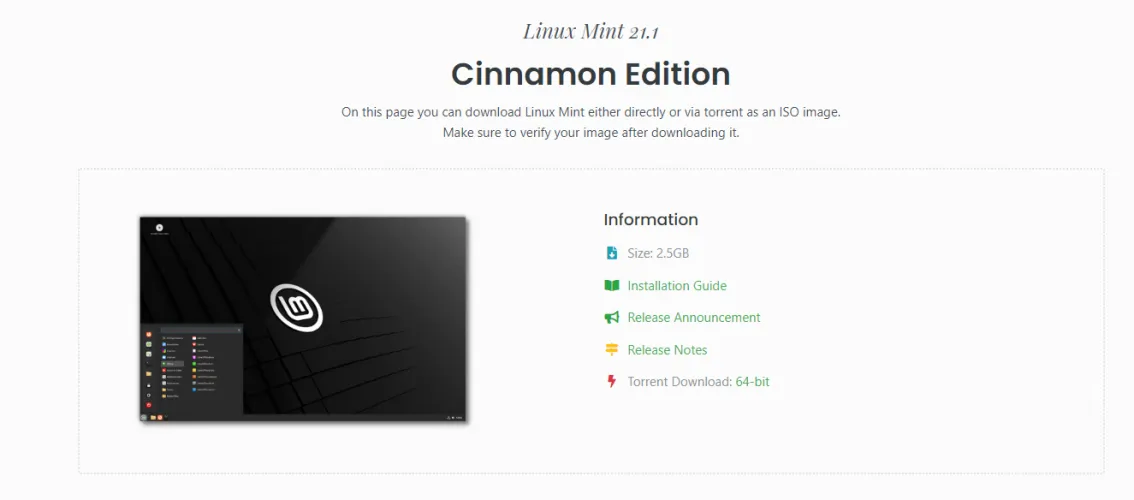 对于所需的Linux Mint版本,请单击下载。您可以通过页面顶部的链接查看安装指南或发行说明。如果你使用BitTorrent,我建议抓取Torrent文件,下载速度会快得多。否则,向下滚动到下载镜像部分并选择要下载的文件。
