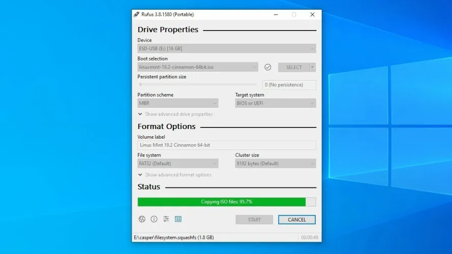 完成后,你会看到一条成功的消息,你的闪存驱动器将被命名为Linux Mint。现在是时候备份你的数据并重新启动你的计算机了。现在是安装Linux的时候了。
