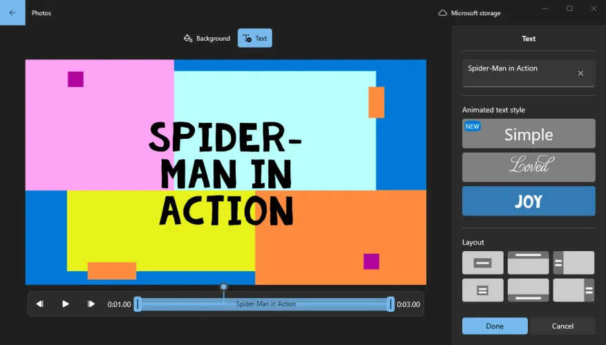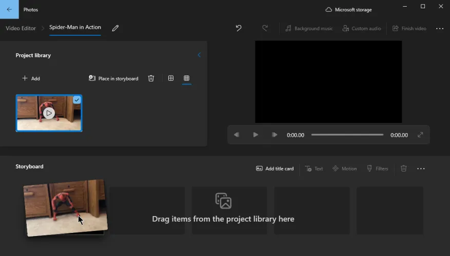 在新视频项目的屏幕上,单击添加按钮,然后选择从这台电脑添加视频。然后可以将导入的剪辑拖动到故事板。您还可以从情节提要中执行多个任务。单击添加标题卡命令,然后键入标题卡的文本,选择样式,并设置持续时间。完成后,单击完成。