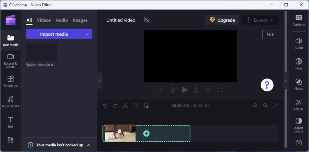 要在Windows中使用ClipChamp,请从开始菜单中选择该应用程序,然后使用Microsoft帐户或其他类型的帐户登录。单击创建新视频以编辑您已拍摄的现有视频。单击导入媒体按钮,然后浏览到要导入的视频。然后,您可以将其拖到时间线上并开始编辑。