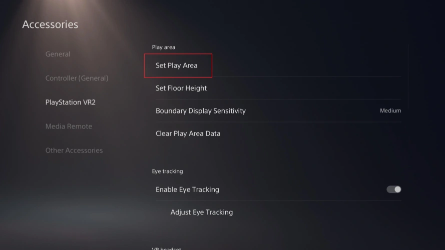 打开附件>PlayStation VR 2>PS VR2设置>设置播放区域。按照屏幕上的说明重新校准您的耳机和控制器,以确保您的视线居中并准确跟踪移动。