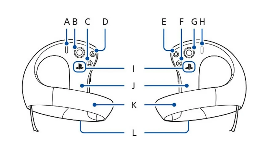 VR游戏经常会提示你重新调整你的视线,以确保你的大脑处于玩游戏的最佳位置。然而,如果你在玩非VR游戏、导航系统设置或在Netflix上看电影时使用VR耳机,如果你改变位置,你可以手动重新居中。只需面向新的所需方向并按住感觉控制器上的选项按钮,该控制器位于右侧控制器上(在上图中标记为H)。