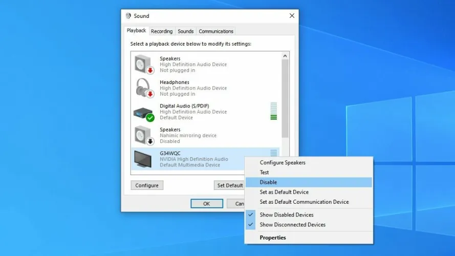 如果你的电脑连接了多个输出设备,但不打算使用其中的一些设备–比如你的显示器内置的扬声器–你可以在软件中禁用它们,这样Windows就不会自动切换到它们。