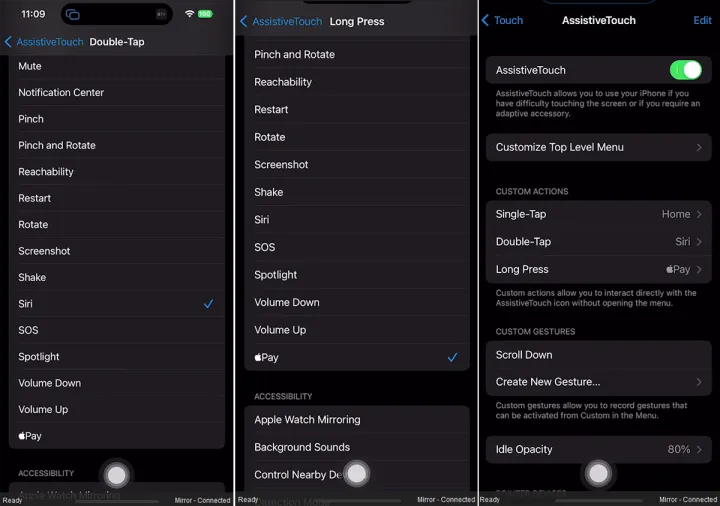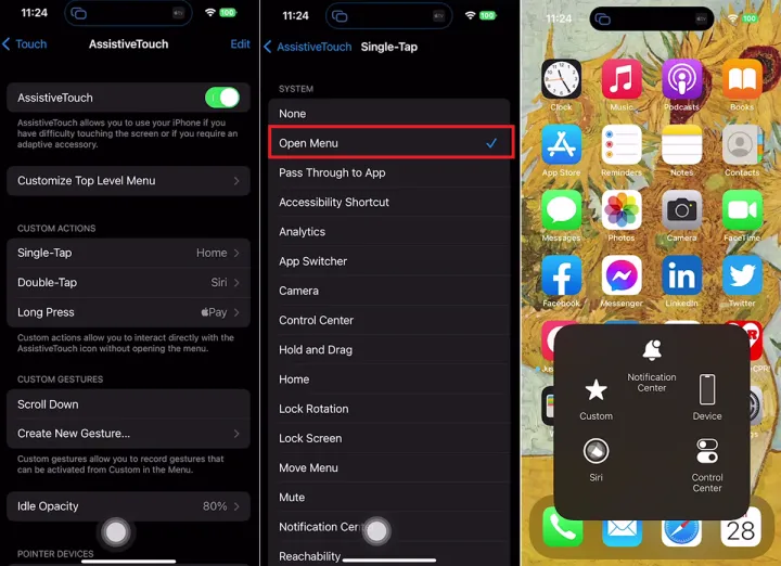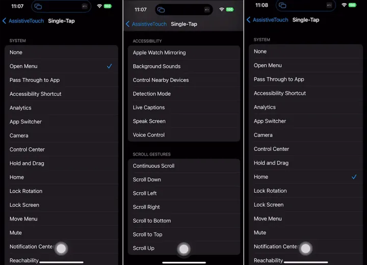 一旦你确定了主页按钮的位置,你就可以微调它的工作方式了。默认情况下,轻触该按钮一次即可显示AssistiveTouch菜单。与Back Tap功能类似,您可以更改此操作,还可以设置用于双击和长按的关联操作。