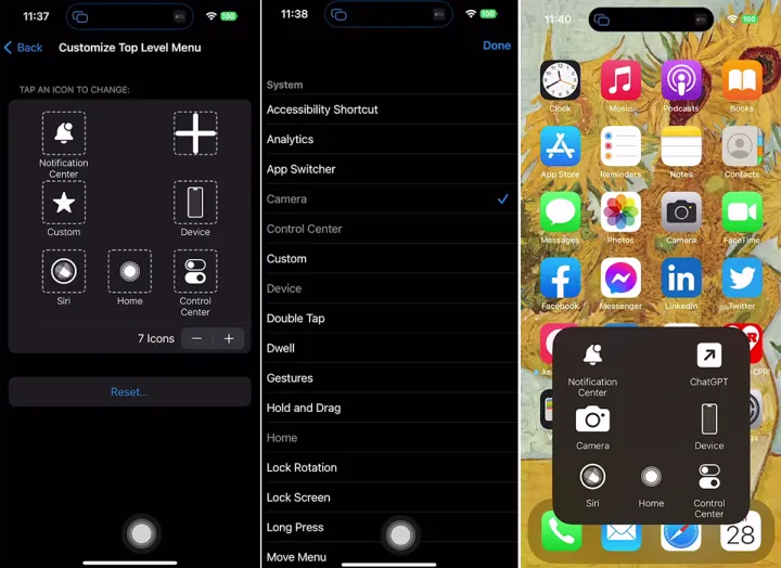 另一个选项是设置打开菜单命令,它将提供一组可定制的快捷键来控制你的设备,就像用一只手使用iPhone一样。打开设置>辅助功能>触摸>AssistiveTouch,然后点击其中一个自定义操作并将其设置为打开菜单。现在,当你点击主页按钮时,将出现一个菜单,其中包含通知、Siri、控制中心等命令。