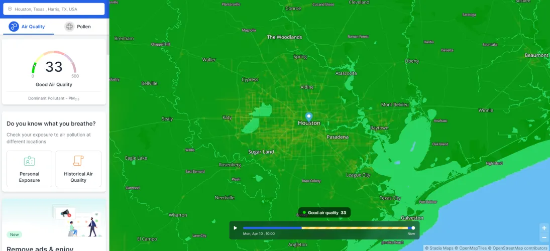 要跟踪个人接触的PM2.5以上的任何东西,你需要为高级版本付费,但主地图(在新窗口中打开)会告诉你空气中到底有什么。
