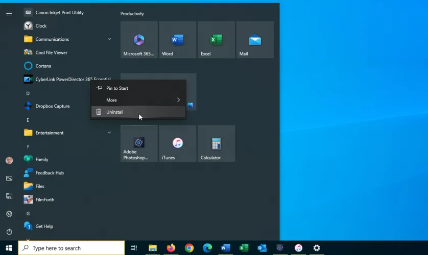 在Windows 10中,点击开始按钮,在左侧的应用程序列表或右侧的平铺部分中查找您想要删除的程序。然后右键单击该程序,然后从菜单中单击卸载选项将其清除。