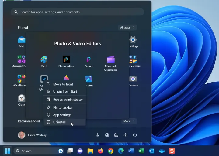 在Windows 11中,单击开始按钮。查找您要删除的任何固定应用程序。点击菜单右上角的All Apps(所有应用程序)条目,查看您电脑上安装的所有程序。右键单击您想要丢弃的应用程序,然后单击卸载命令。