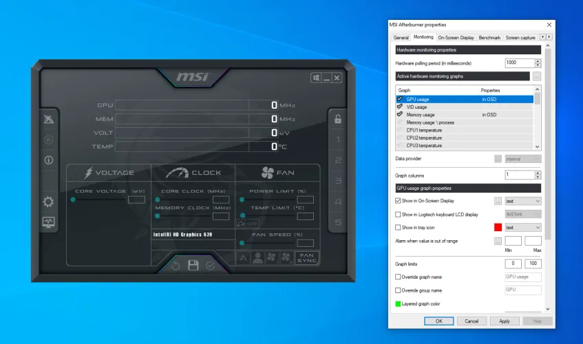 为了查看这些其他统计数据,我喜欢使用一个名为MSI Afterburner的工具(在新窗口中打开)。从技术上讲,它的主要目的是让你的显卡超频,但它也提供了一个令人难以置信的详细、可定制的覆盖图,带有广泛的统计数据可供跟踪。它适用于任何显卡,而不仅仅是MSI制造的显卡。