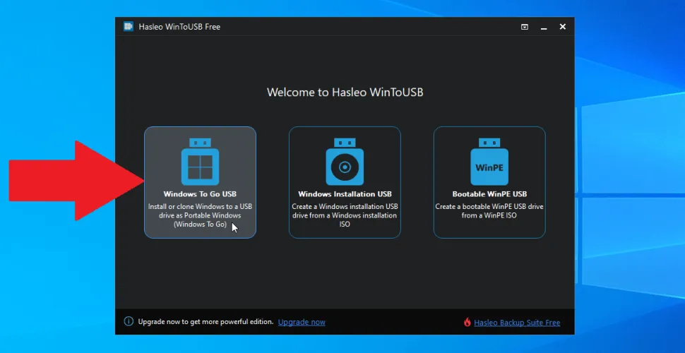 例如,您只能创建Windows 10或Windows 11的安装,而不能创建专业版或企业版。如果你需要这两个版本中的任何一个,WinToUSB专业版的价格为29.95美元,而企业版的价格为219.95美元。在本例中,请单击橙色升级按钮。
