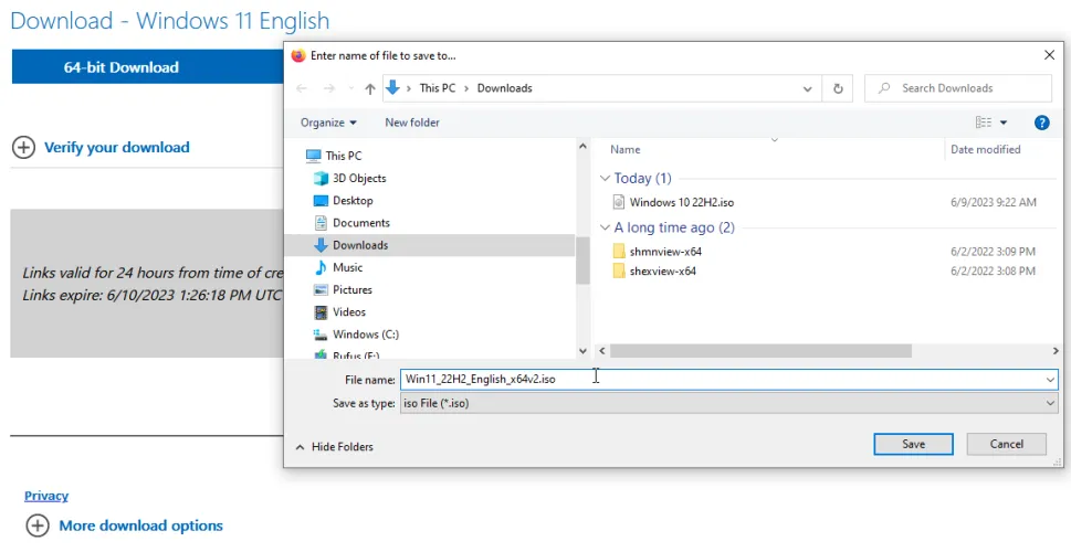 单击选择下载下拉菜单,然后选择Windows 11(x64设备的多版本ISO)选项。然后单击Download Now(立即下载)按钮。选择产品语言,然后单击确认。然后单击64位下载按钮并将ISO文件保存到硬盘。