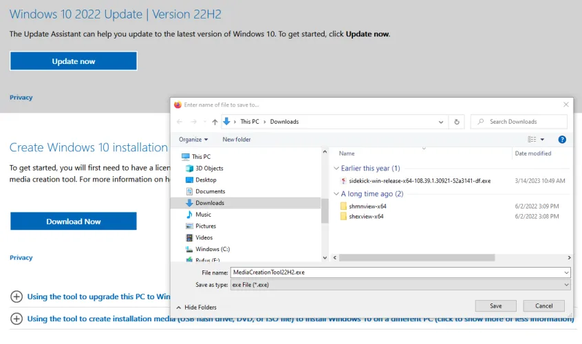 如果您希望运行Windows 10,请导航到下载Windows 10网站(在新窗口中打开),然后向下滚动到创建Windows 10安装介质部分。单击立即下载按钮,并将MediaCreationTool exe文件保存到您的PC。双击下载的文件以安装该程序。