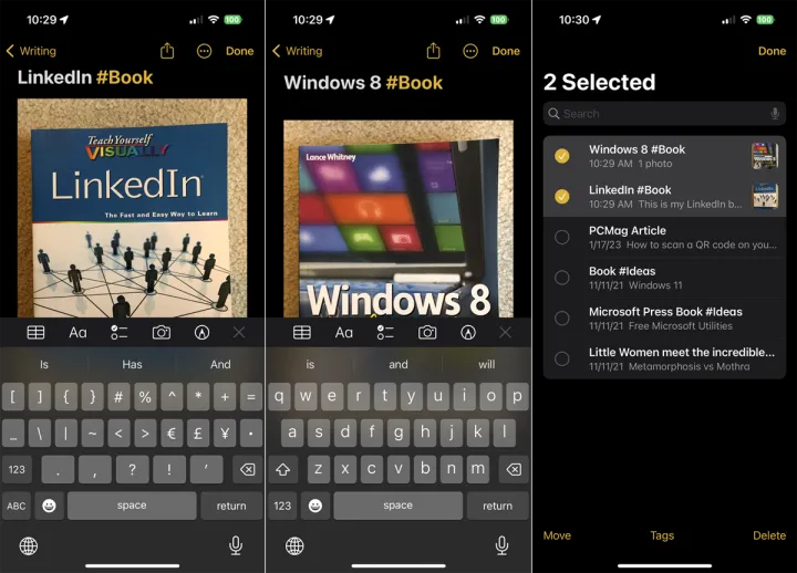 创建标签后,只需键入#符号并选择显示在键盘上方的标签,即可在另一便笺中使用相同的标签。要将现有标签添加到多个附注,请点击省略号图标并选择选择附注。点击要添加标签的所有备注,然后选择屏幕底部的标签选项,并选择要添加的标签。