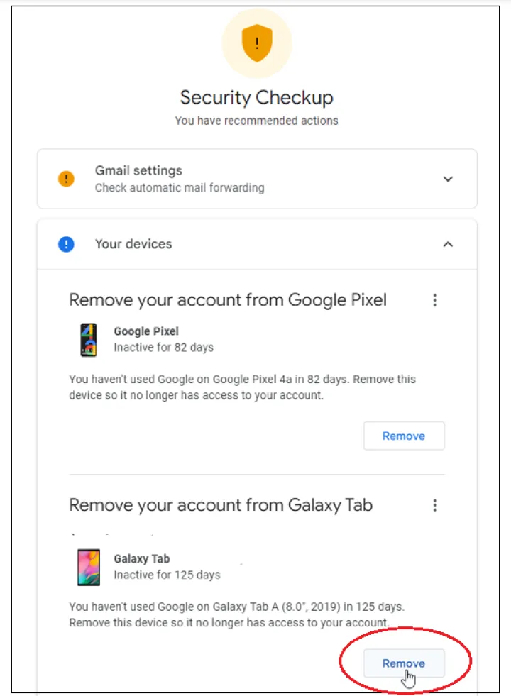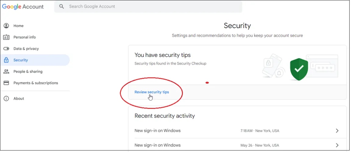 在安全检查页面上选择最近的安全活动以查看记录的事件,例如在特定设备上使用您的Google帐户登录和更改密码。查看每个事件;如果您认为任何活动可疑,请单击查看不熟悉的活动?纽扣。
