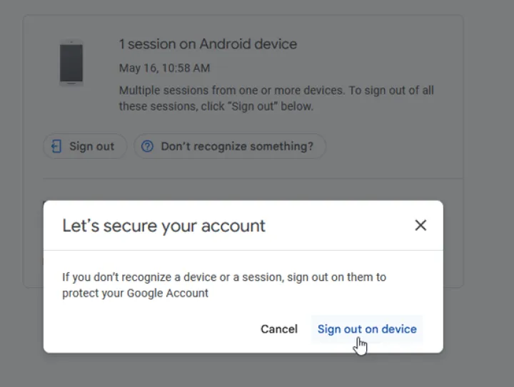 您还可以单击您登录的位置下拉菜单,查看您的帐户所连接的每台设备。单击特定设备可查看详细信息。如果您不熟悉该设备,请单击注销或无法识别设备?>在设备上注销。