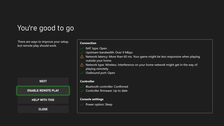 在开始玩游戏之前,您还需要确保您有一个稳定的互联网连接,满足远程游戏正常工作的最低要求。以下是Xbox建议你需要的东西: