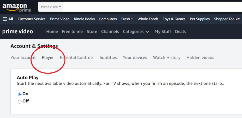 要在浏览器中使用Prime Video时更改此功能: