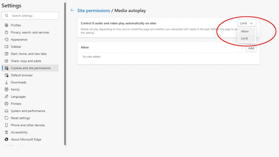 您可以在Edge Brower中限制自动播放。