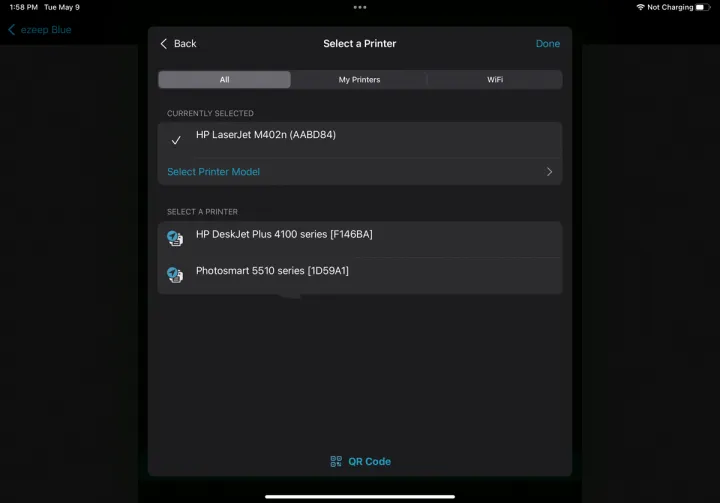 选择文件以选择设备上的现有文件,选择照片以从相册中查找照片,或选择文档以扫描文档。然后,您可以选择要打印的单个项目。在此处,点击选择打印机按钮以选择您要使用的网络打印机,然后点击完成,