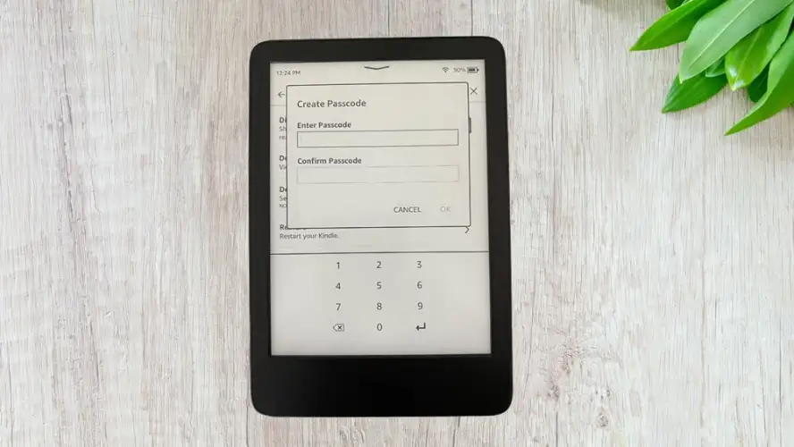 如果你想让你的阅读保持隐私,你可以在你的Kindle上设置一个密码。转到主屏幕,点击右上角的三个点。然后选择设置>设备选项>设备密码。您将能够设置最长为12位的数字代码。