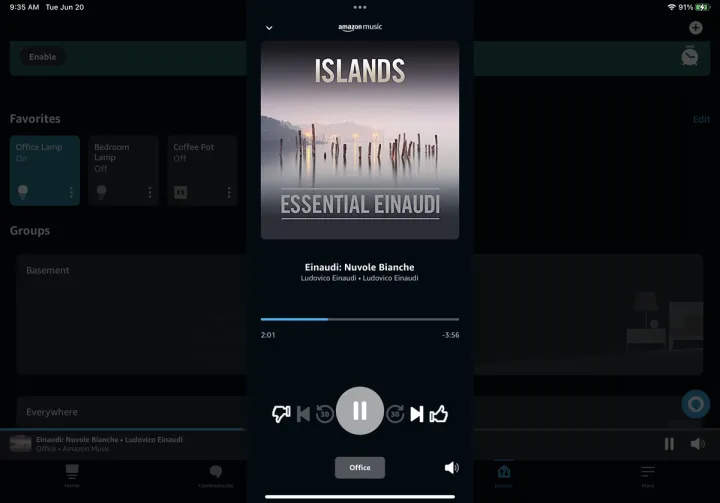 要在组中的所有Echo设备上播放音乐,请说“Alexa,在[多房间组的名称]上播放音乐。”你也可以点击Alexa应用程序中的播放图标,选择你想要播放的音乐,然后选择你的新组合作为输出。