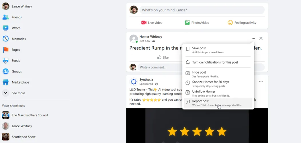 如果一个帖子令人担忧或令人担忧,你可以采取进一步的行动。在这种情况下,单击省略号并选择报告发布选项。