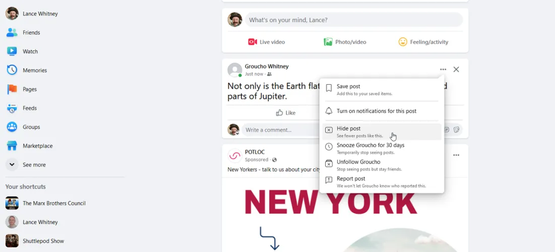 首先,在你取消对某人的关注或取消好友关系之前,你确实可以选择隐藏你的朋友创建的个人帖子。如果你的朋友在你的时间线上发布了你不喜欢或不想看到的东西,这可能是一个有用的开始。这样做的一个副作用是,Facebook将试图在未来隐藏类似的帖子,这可能是你不想要的。要隐藏帖子,请单击帖子旁边的省略号。从下拉菜单中,单击隐藏POST。