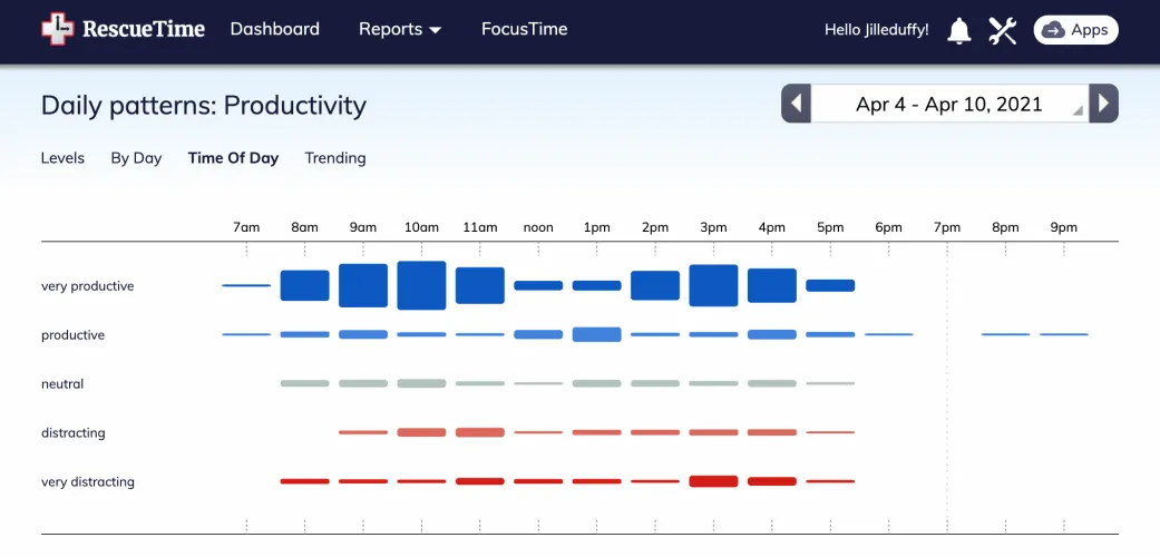RescueTime等自动时间跟踪应用程序可以让你检查自己是否遵守了时间表。它们还可以帮助你找出一天中什么时候效率最高,什么时候你最懒。你可以通过保护你最有可能完成困难工作的时间来利用这些信息对你有利。例如,如果你倾向于在上午9:30到11:30之间有很高的工作效率,就不要在这段时间安排会议。