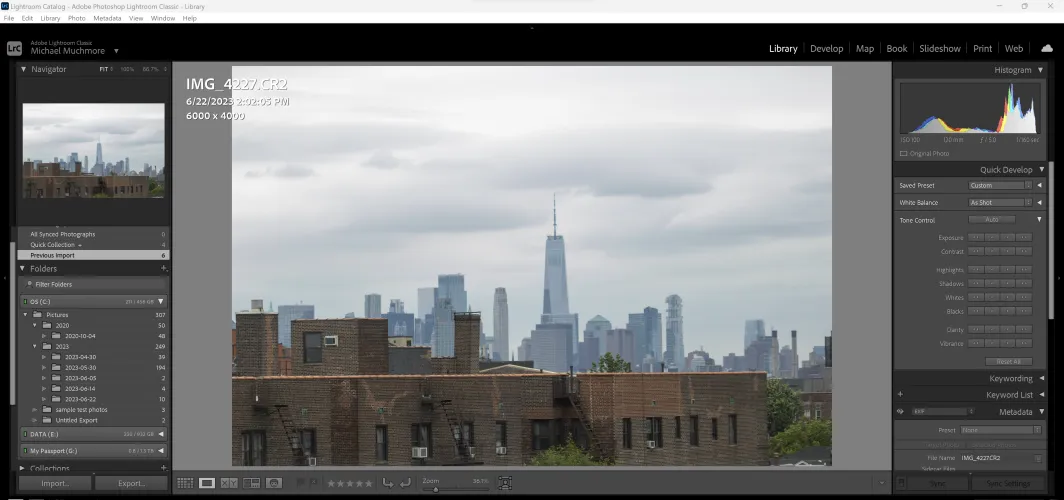 原始相机文件比JPG文件大得多。出于这个原因,我将相机设置为只生成RAW文件,而不是同时生成RAW和JPG。我现在可以在相机背面和台式电脑文件夹上看到RAW文件,这要归功于Windows最近和MacOS对RAW格式的长期内置支持。如果我上传到Google Pxhotos,我也可以在那里看到它们。由于ChromeOS使用这款应用来拍摄照片,你也可以在该操作系统上查看它们。最重要的是,使用我选择的照片编辑器Adobe Lightroom Classic可以轻松处理RAW文件。