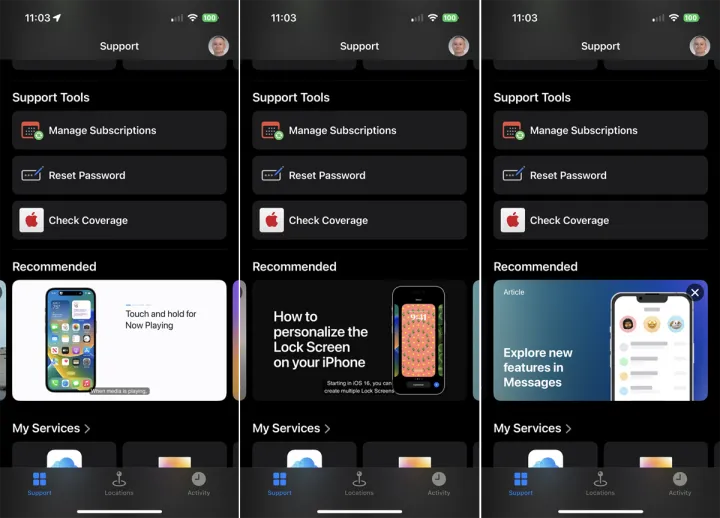 您将找到有关如何设置和使用Apple设备、软件、服务和功能的教程。该应用程序和网站都可以将你与苹果支持代表联系起来,如果你的技术问题需要前往苹果商店,该应用程序或网站可以帮助你安排约会。让我们先看看这个应用程序,然后再浏览一下网站。