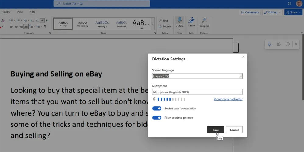 在Word中为Web听写