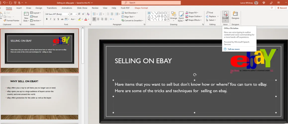 在PowerPoint中听写