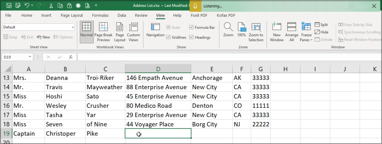 您可以口述标点符号和在屏幕上移动的特定操作。例如,说“Tab”移到列中的下一个单元格,或说“new line”移到行中的下一个单元格。说“撤销那个”这样的话来抹去你口述的最后一个单词。Microsoft提供了您可以使用Windows语音识别口述的短语和操作的完整列表。